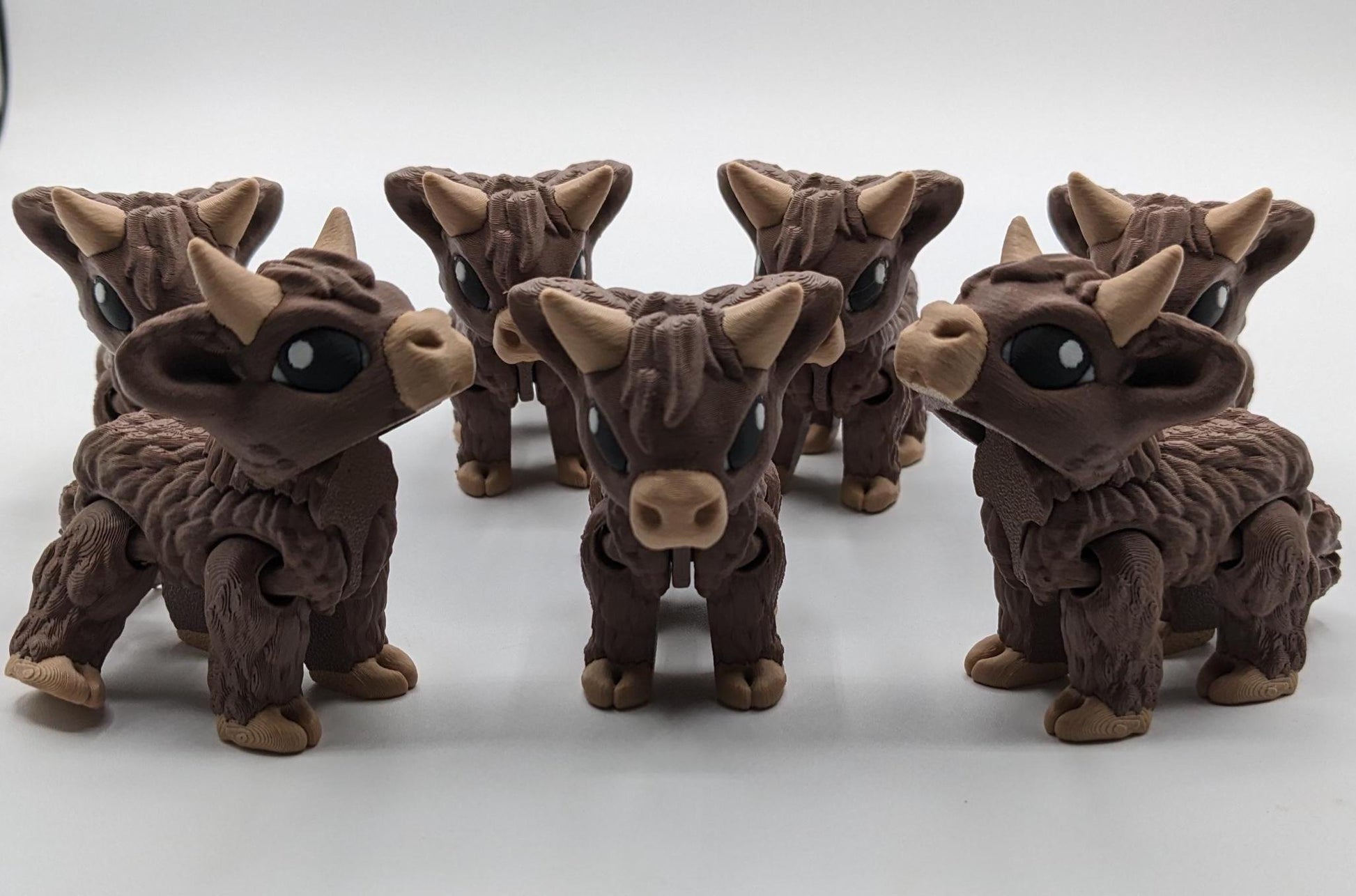 Meet the Articulated Baby Highland Cow Fidget Toy, a delightful 3D-printed creation inspired by the adorable and fluffy Highland cows! This fully poseable fidget toy features movable joints, making it perfect for stress relief, improving focus, or simply adding a touch of cuteness to your desk or shelf. Whether you're a fan of Highland cows, love creative collectibles, or need an engaging fidget toy, this baby Highland cow is guaranteed to bring a smile to your face.