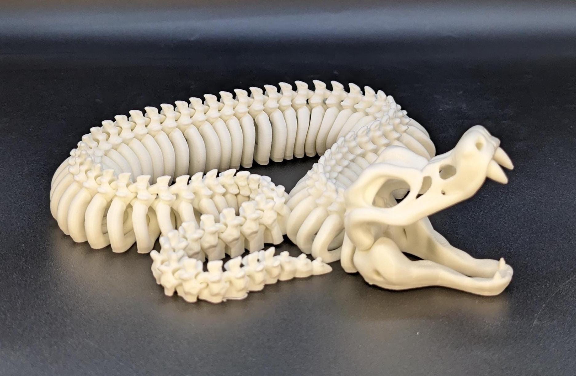 Slither into fun with the Articulated Skeleton Snake Toy Fidget, a unique 3D-printed creation that combines creativity, interaction, and an eerie-cool design! This fully articulated skeleton snake features flexible joints that make it perfect for fidgeting, posing, or displaying as a fascinating collectible. Whether youâre a reptile enthusiast, toy collector, or just looking for a stress-relieving fidget toy, this skeleton snake is sure to impress!