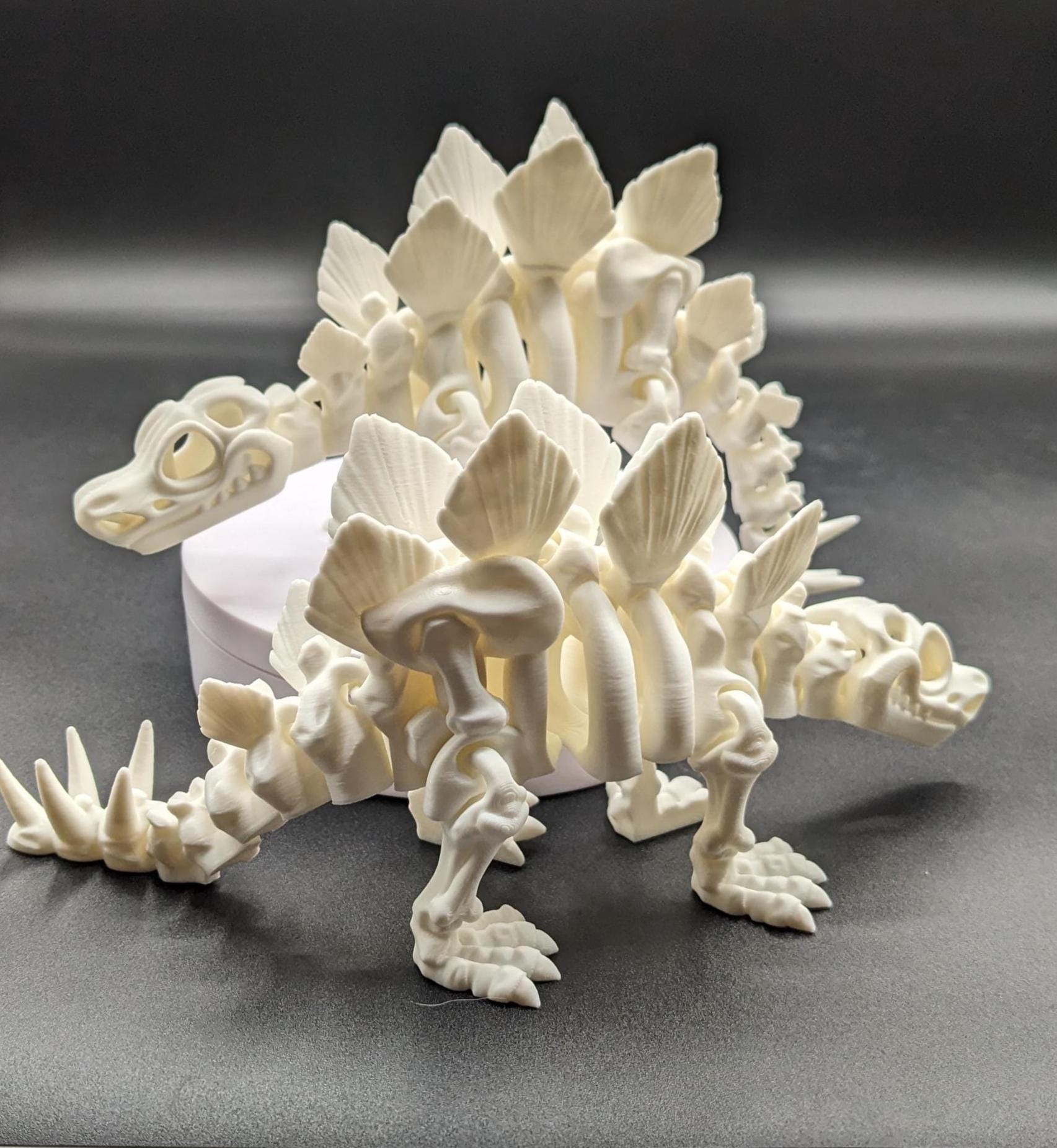 Made with eco-friendly PLA, this lightweight yet durable toy comes in two colors, classic white and matte rainbow. Opt for classic bone white to mimic a real fossil, or let your creativity run wild. The Articulated Stegosaurus Skeleton Toy is not just fun and educational-it's also a perfect gift for kids, collectors, and dinosaur fans of all ages!
