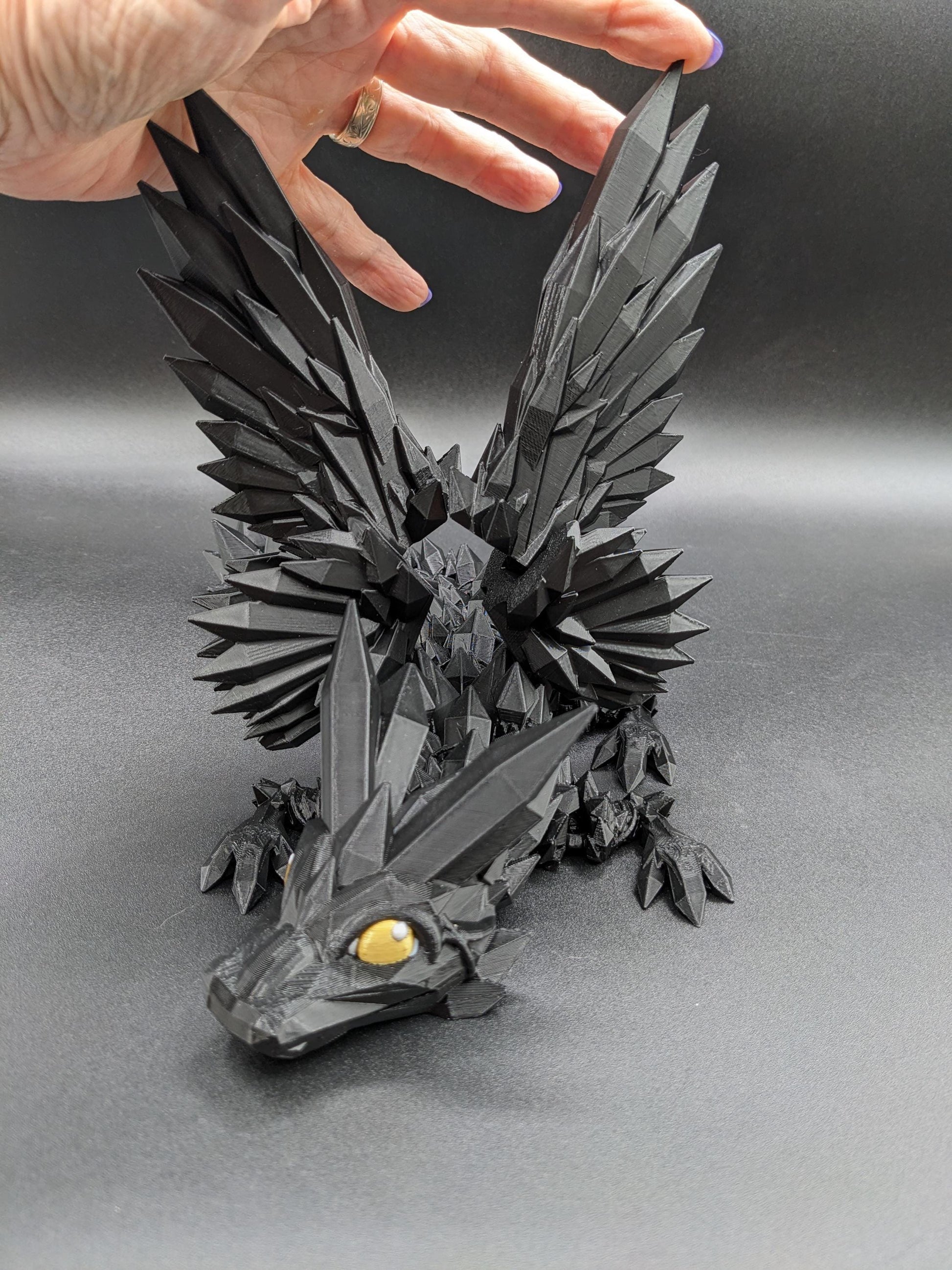 Bring a touch of magic into your life with the 3D Printed Winged Crystal Dragon by Cinderwing. Order yours today and watch as this majestic creature adds wonder and fascination to your surroundings. Don't miss out on the chance to own a piece of fantasy brought to life!