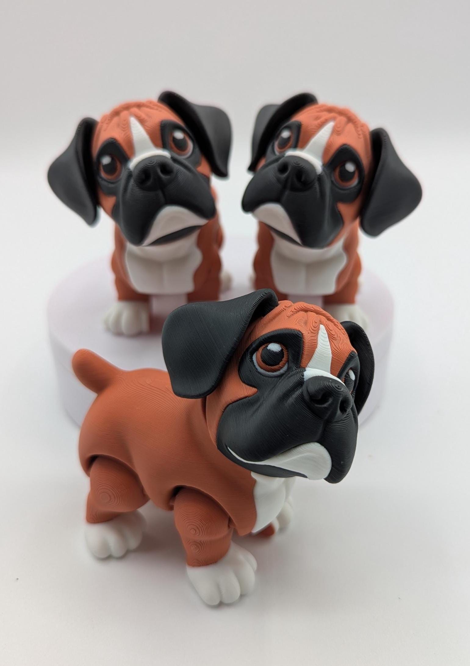 Brighten your day with the Loveable Articulated Boxer Puppy Dog Figurine Toy, a charming 3D-printed creation that captures the playful personality and adorable features of a Boxer puppy! Designed with fully articulated legs, this puppy figurine is perfect for fidgeting or displaying as a delightful decorative piece. Whether youâre a Boxer lover, a dog enthusiast, or searching for a one-of-a-kind gift, this adorable Boxer puppy will bring joy and fun to any dog loverâs life.