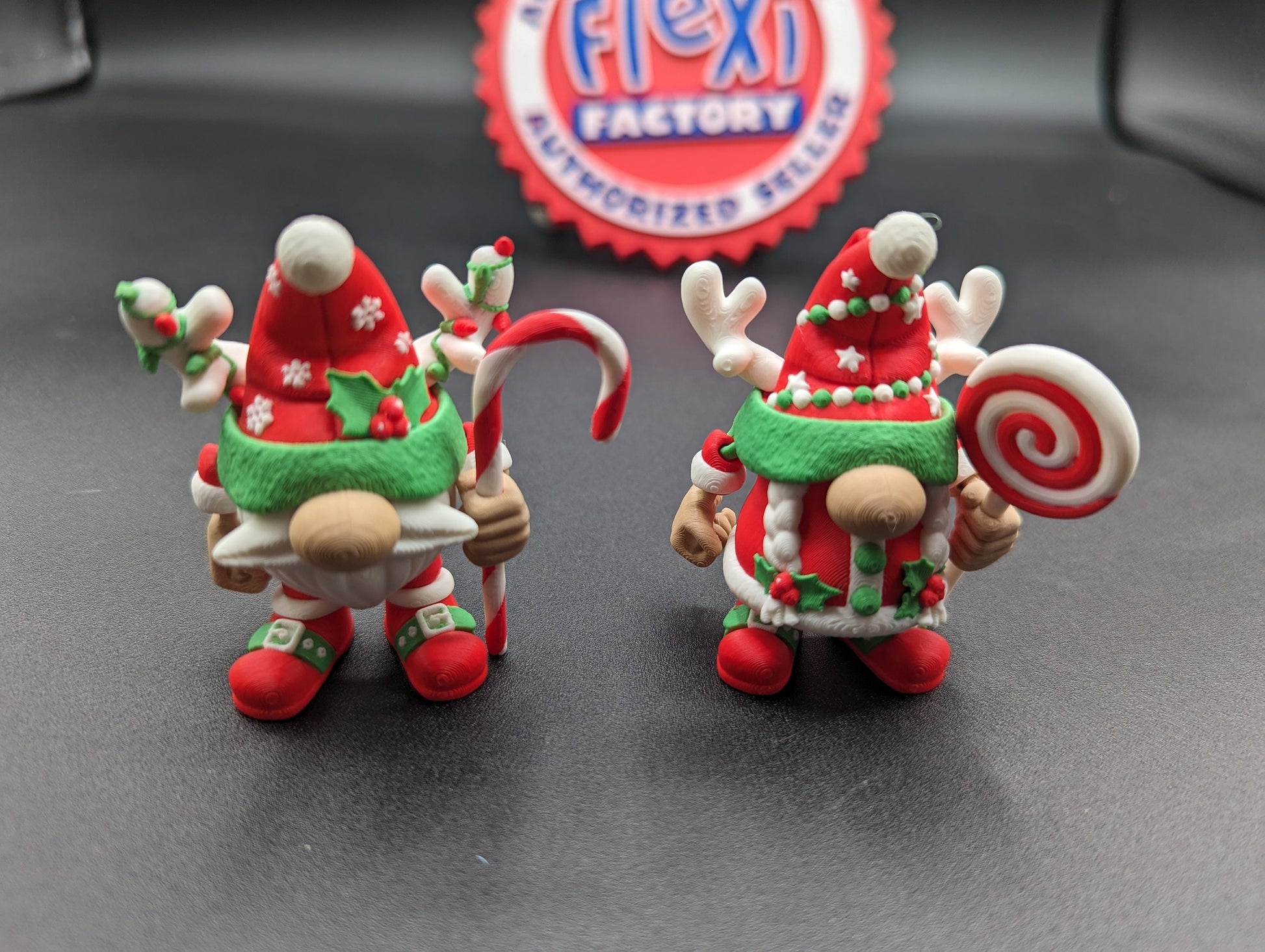 Pair of 3D Printed Christmas Gnome Articulating Ornament by Flexi-Factory! Garden Gnome, Christmas Tree, Holiday Decor. unique holiday gift