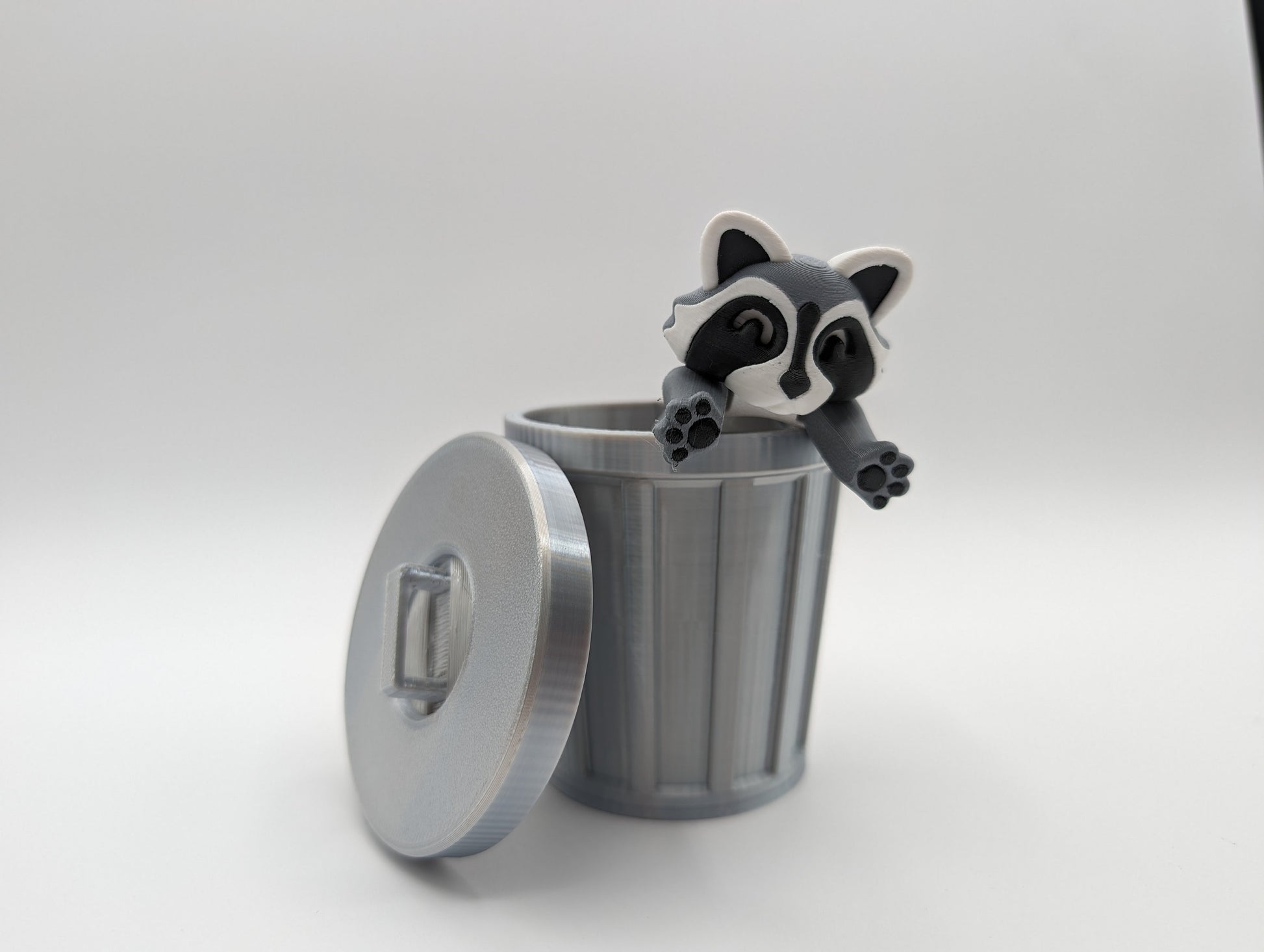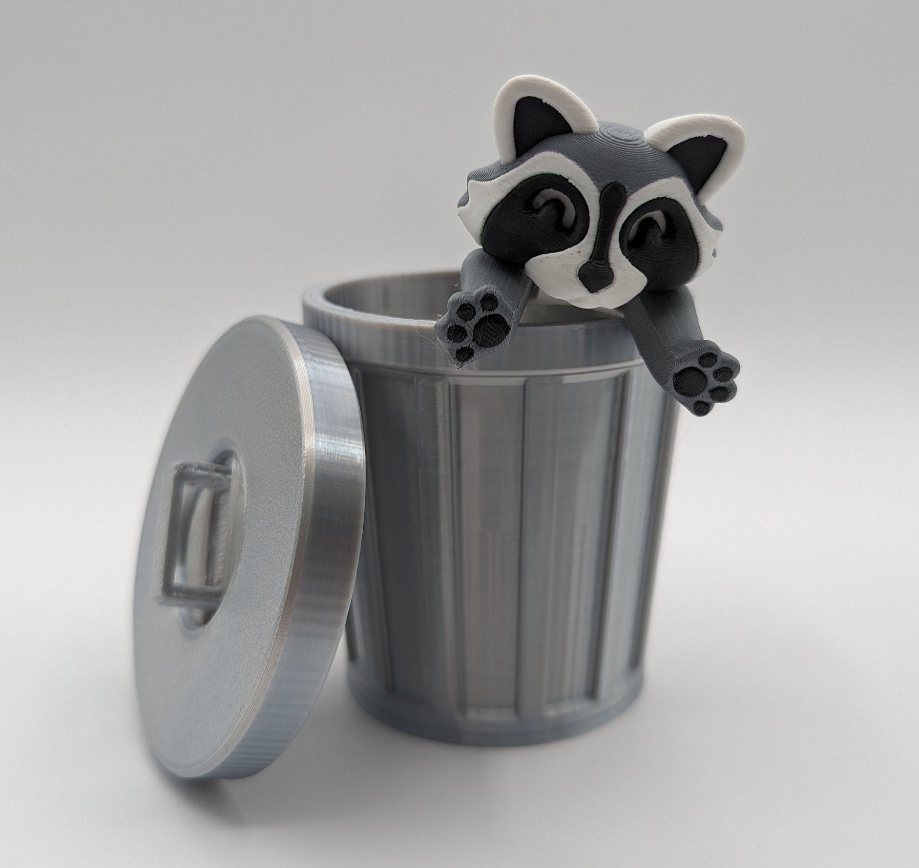 🌟 Get ready for some adorable mischief with our Raccoon with Trashcan Fidget Toy! 🌟 Crafted with precision using top-notch 3D printing technology, this charming duo is here to add a touch of whimsy to your day while melting away stress.