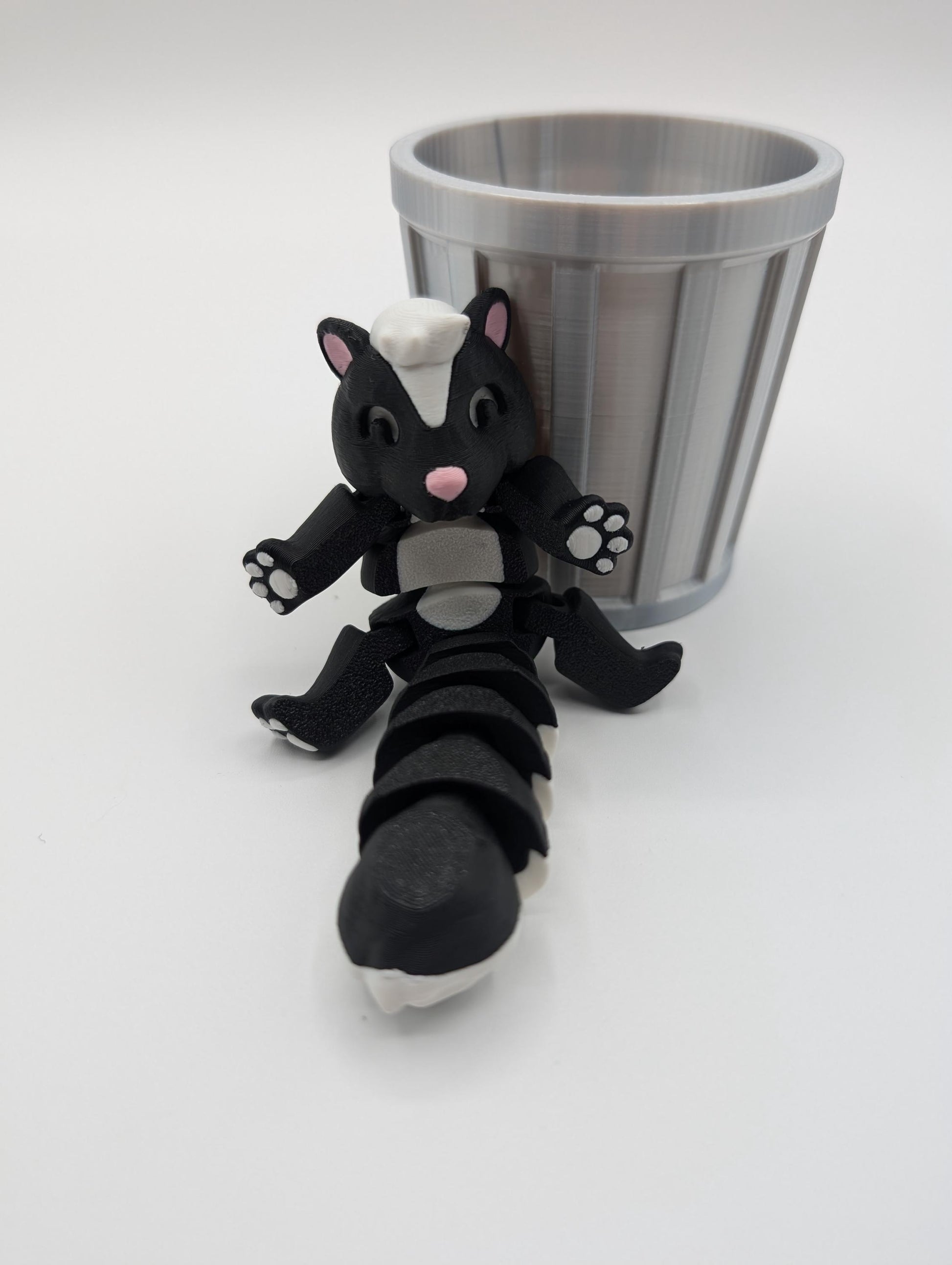 Skunk with Trash Can Fidget Toy 3D Printed Cute Stress Relief