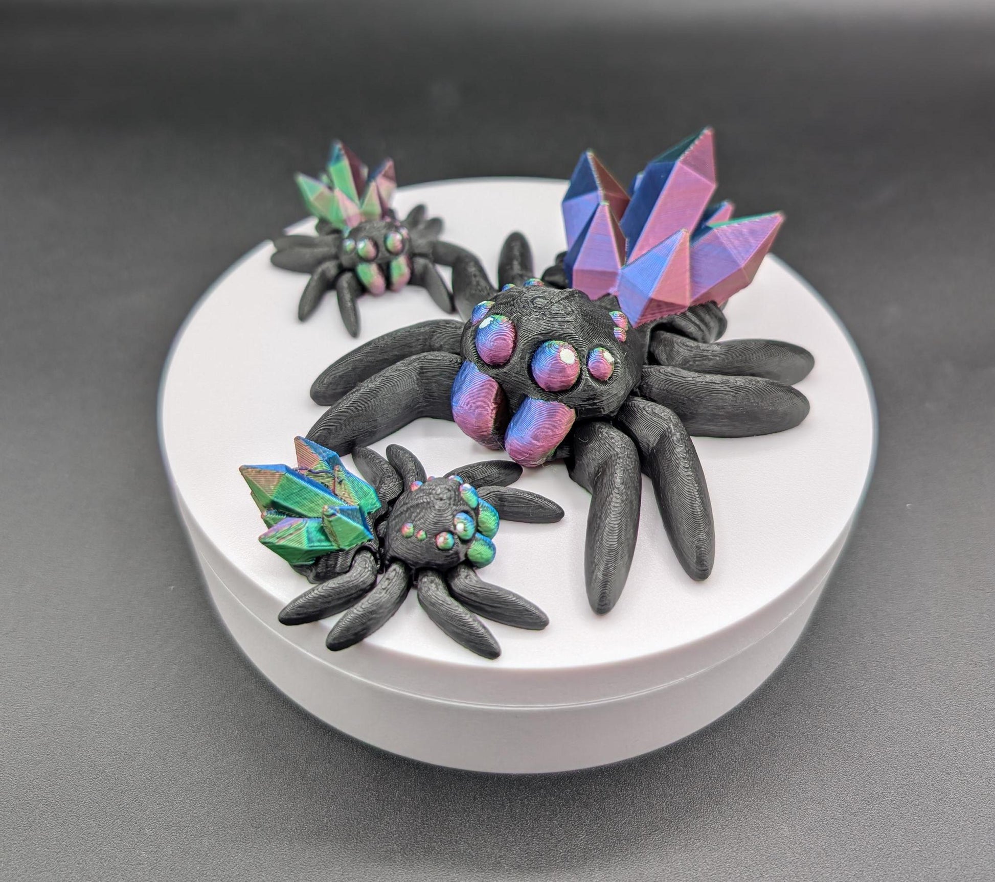 Meet our adorable 3D Printed Tiny Magical Articulated Crystal Spider Fidget - your pocket-sized companion for stress relief and endless fun! Crafted with precision, this little crystal spider is more than just a toy; it's a delightful escape from the daily hustle. Feel the smooth texture and enjoy the satisfying tactile experience whenever you need a moment of calm.